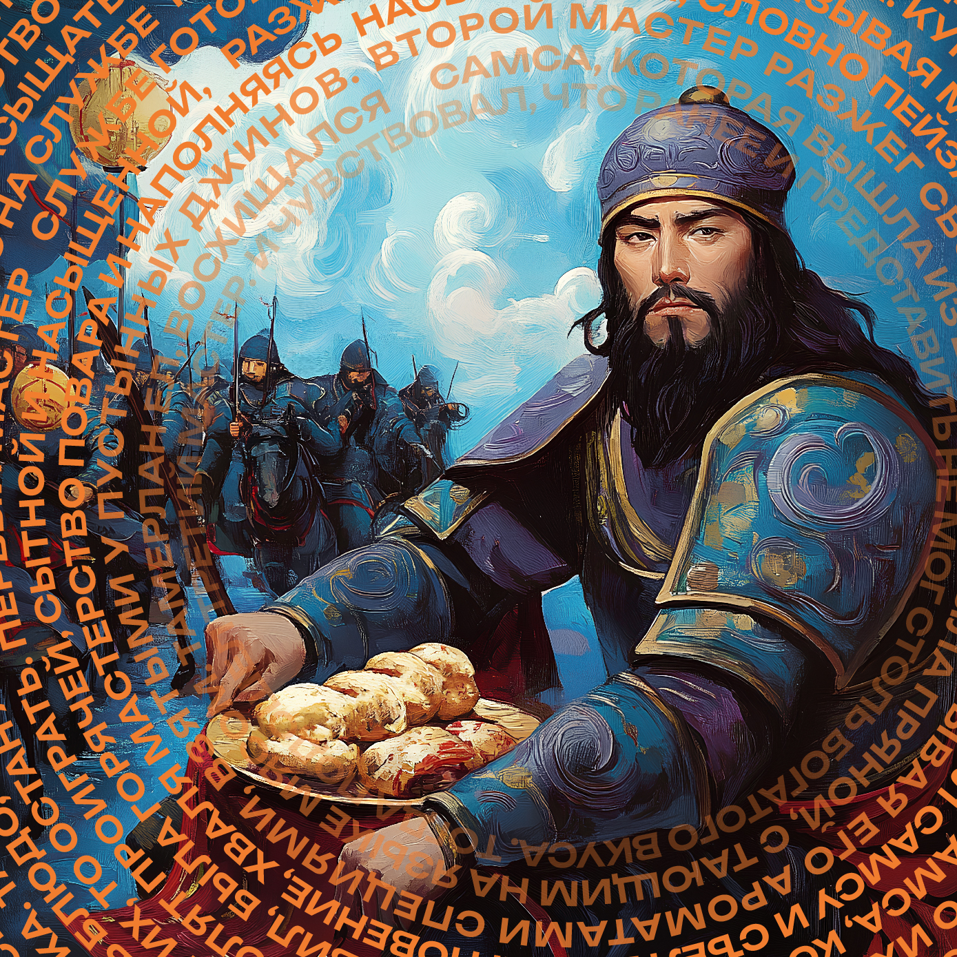 Второй мастер разжег свой тандыр, пропитывая его ароматами специями, взятыми у пустынных джинов. Самса, которая вышла из его печи, была пряной, с тающим на языке мясом. Тамерлан ел, восхищался и чувствовал, что ранее и представить не мог столь богатого вкуса.